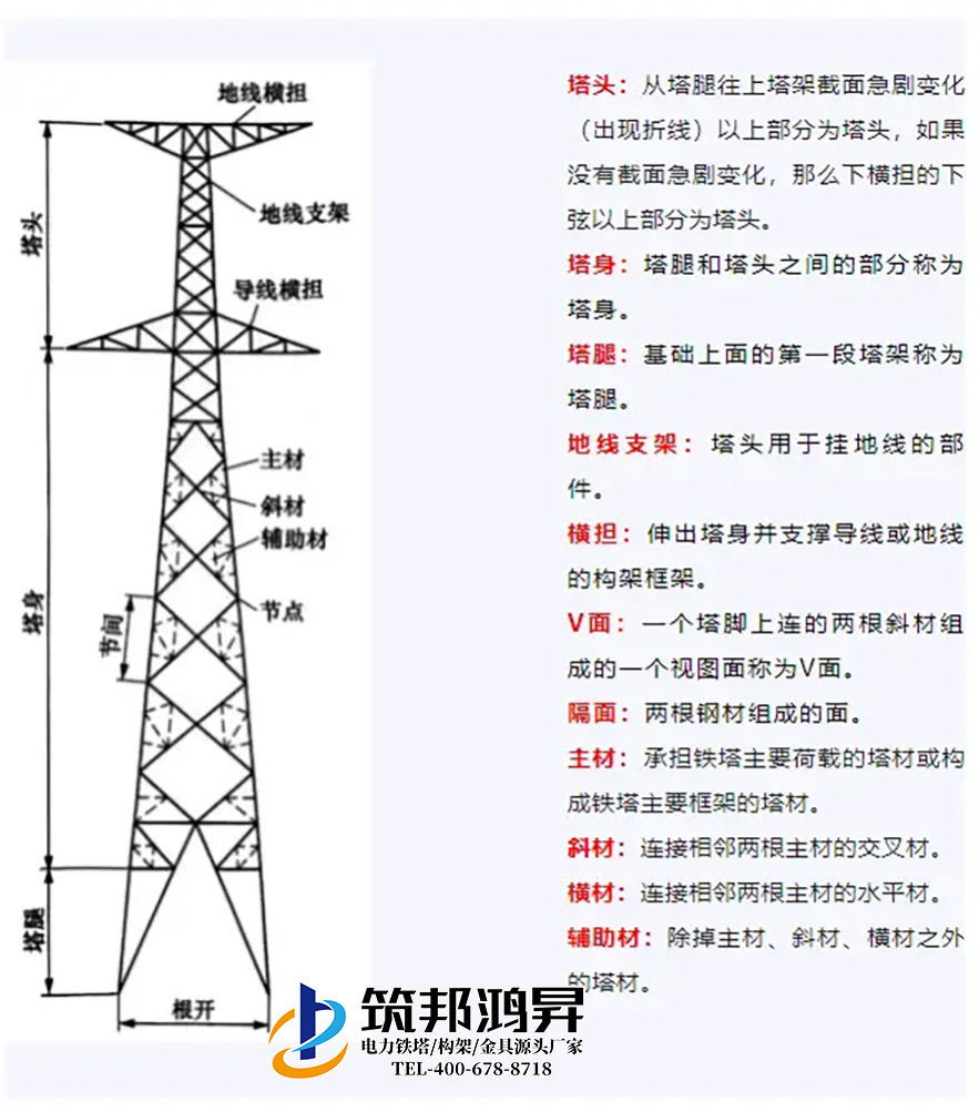 3. 塔腿 :将压力传递至基础,通常具备不同的呼称高(地脚到最下层横担的高度)。
